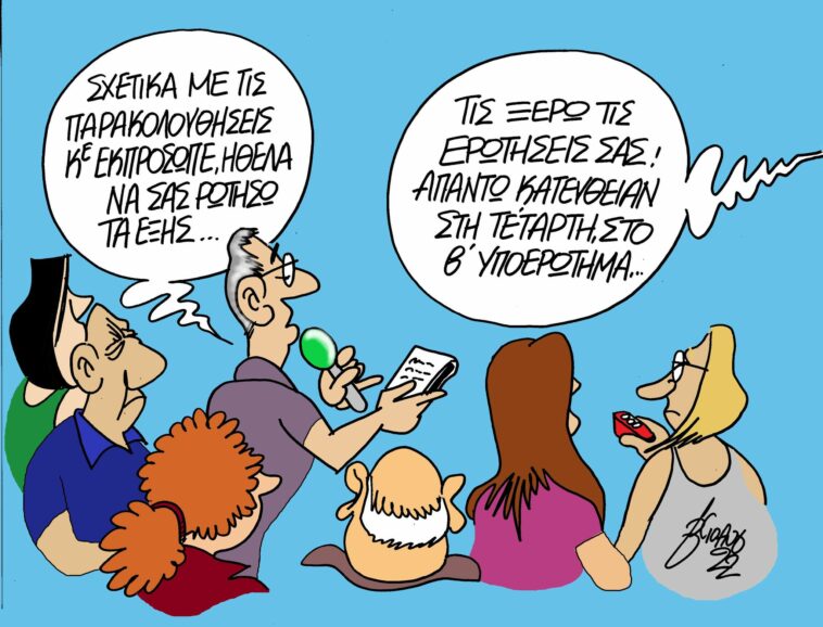 Στο σημερινό alter-σκίτσο ο Βαγγέλης Χερουβείμ σχολιάζει τη στάση της κυβέρνησης απέναντι στα ερωτήματα των δημοσιογράφων για το σκάνδαλο των υποκλοπών.