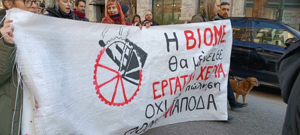 Μέσα από μια μαζική συνέλευση που πραγματοποιήθηκε στη ΒΙΟΜΕ την προηγούμενη Κυριακή οι εργάτες και οι εργάτριες του εργοστασίου ανακοίνωσαν τη κρίσιμη κατάσταση στην οποία βρίσκεται το εγχείρημα λόγω της πώλησης του οικοπέδου μέσω ηλεκτρονικού πλειστηριασμού σε fund του εξωτερικού.