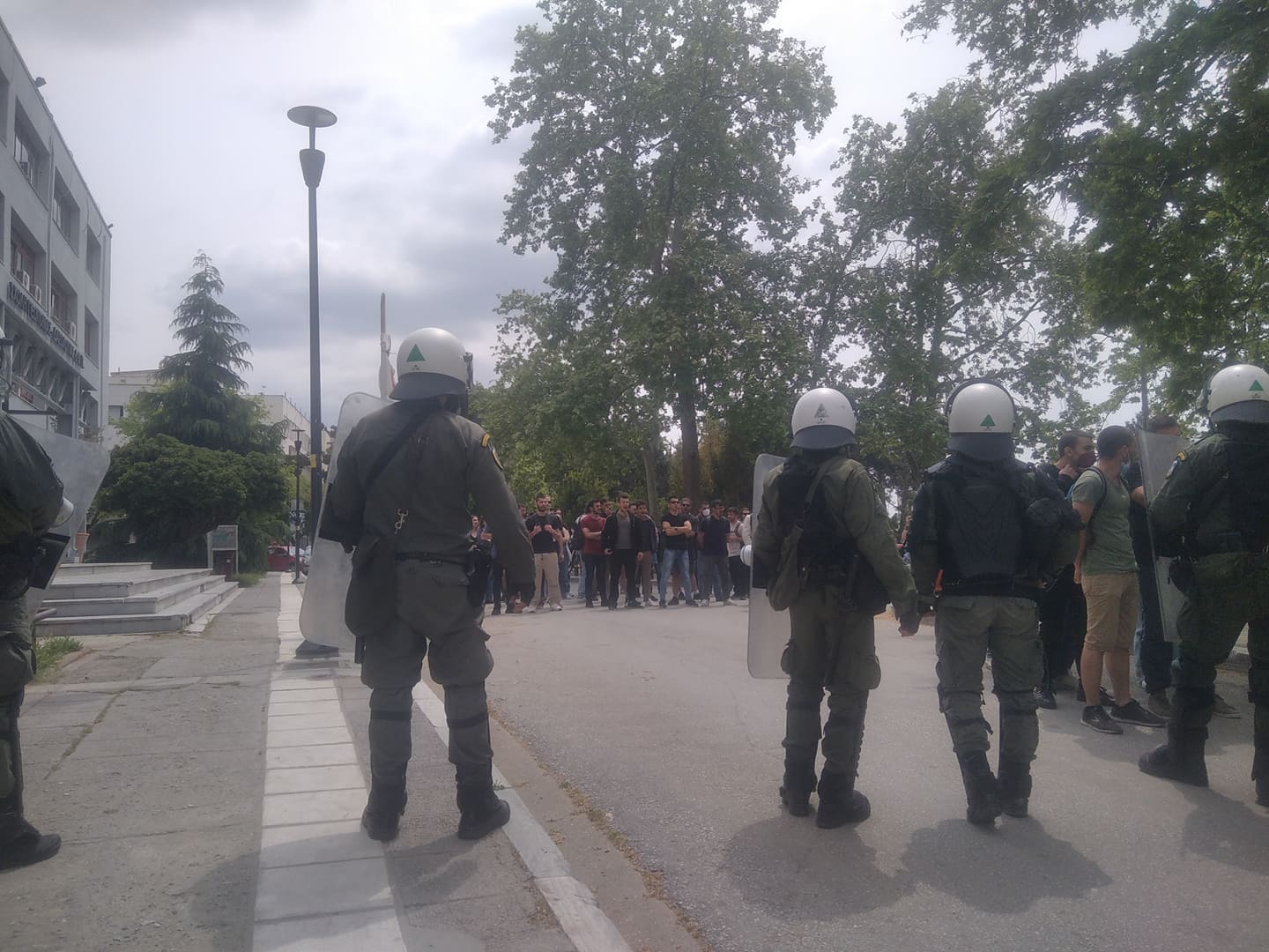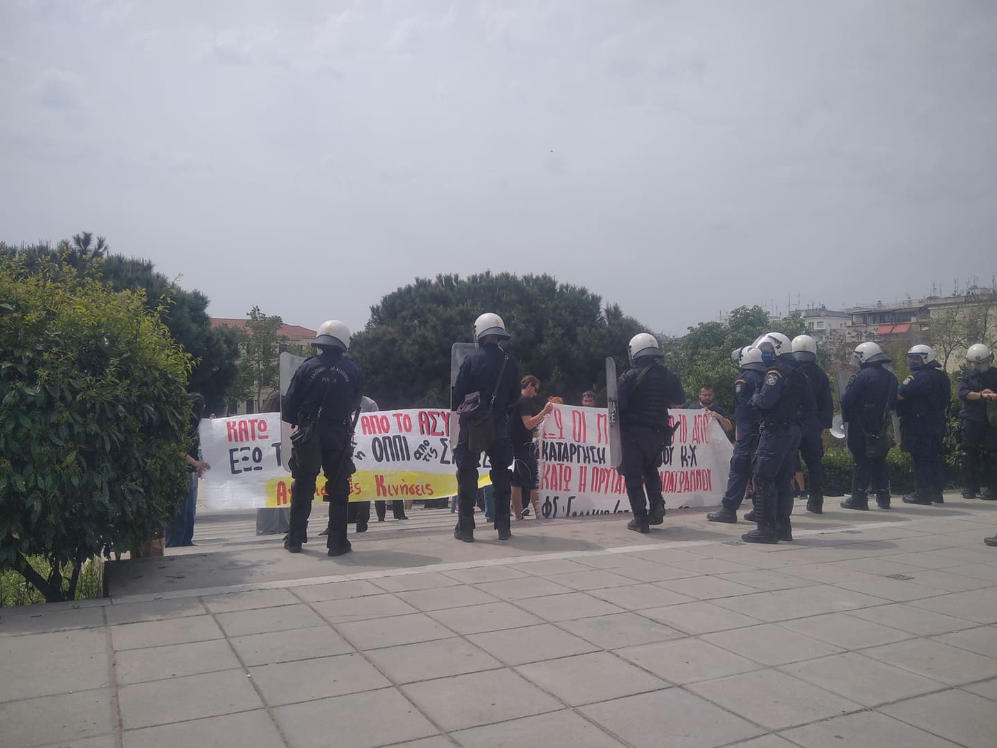 Για ακόμη μία μέρα η αστυνομία έχει στρατοπεδεύσει στο προαύλιο χώρο της ΣΘΕ στο ΑΠΘ αποκλείοντας φοιτητές και καθηγητές να εισέλθουν στο κτίριο της σχολής. Η αστυνομία μπαίνει καθημερινά στο πανεπιστήμιο πλέον με πρόσχημα τις εργασίες στο κατεδαφισμένο Στέκι στο Βιολογικό που λειτουργούσε επί 34 χρόνια ως πολιτιστικός και πολιτικός χώρος. Και σήμερα δεκάδες μέλη φοιτητικών συλλόγων συγκεντρώθηκαν έξω στη ΣΘΕ ζητώντας την απομάκρυνση της αστυνομίας από τα πανεπιστήμια, αντιδρώντας παράλληλα στην εφαρμογή του νόμου Κεραμέως- Χρυσοχοΐδη που βάζει την αστυνομία στα πανεπιστήμια με τραγικά αποτελέσματα, όπως είδαμε την περσινή χρονιά, με τραυματισμούς φοιτητών και κρεσέντο βίας εκ μέρους της αστυνομίας. Νωρίτερα, φοιτητικοί σύλλογοι συγκεντρώθηκαν μπροστά στην πρυτανεία φωνάζοντας συνθήματα κατά της αστυνομίας και κατά του πρύτανη Ν. Παπαϊωάννου που έχει την ευθύνη για την εξωπραγματική αυτή εικόνα της αστυνομοκρατίας στο ΑΠΘ.